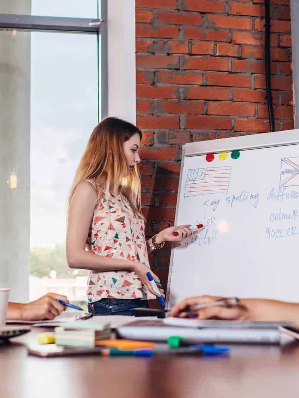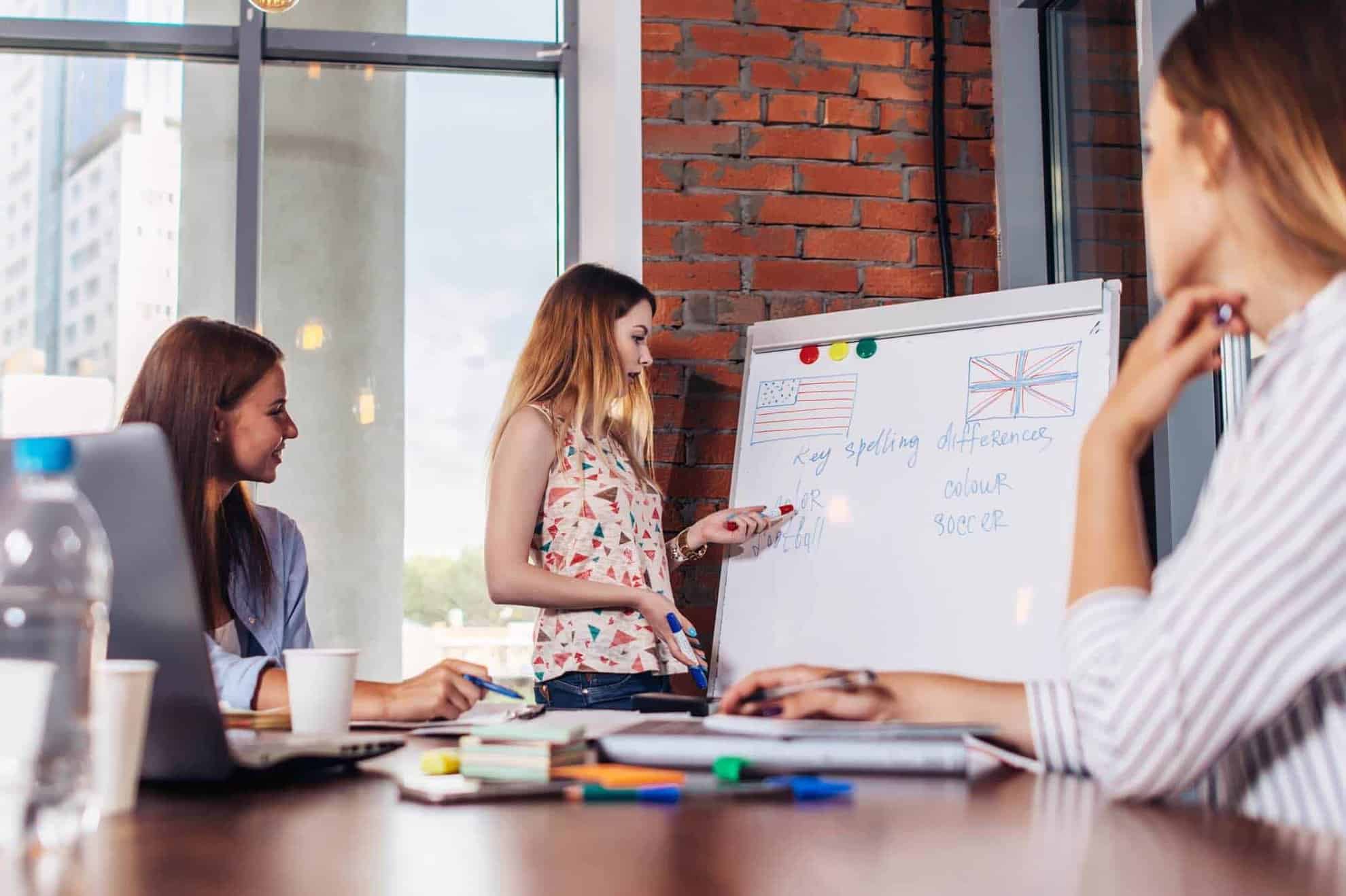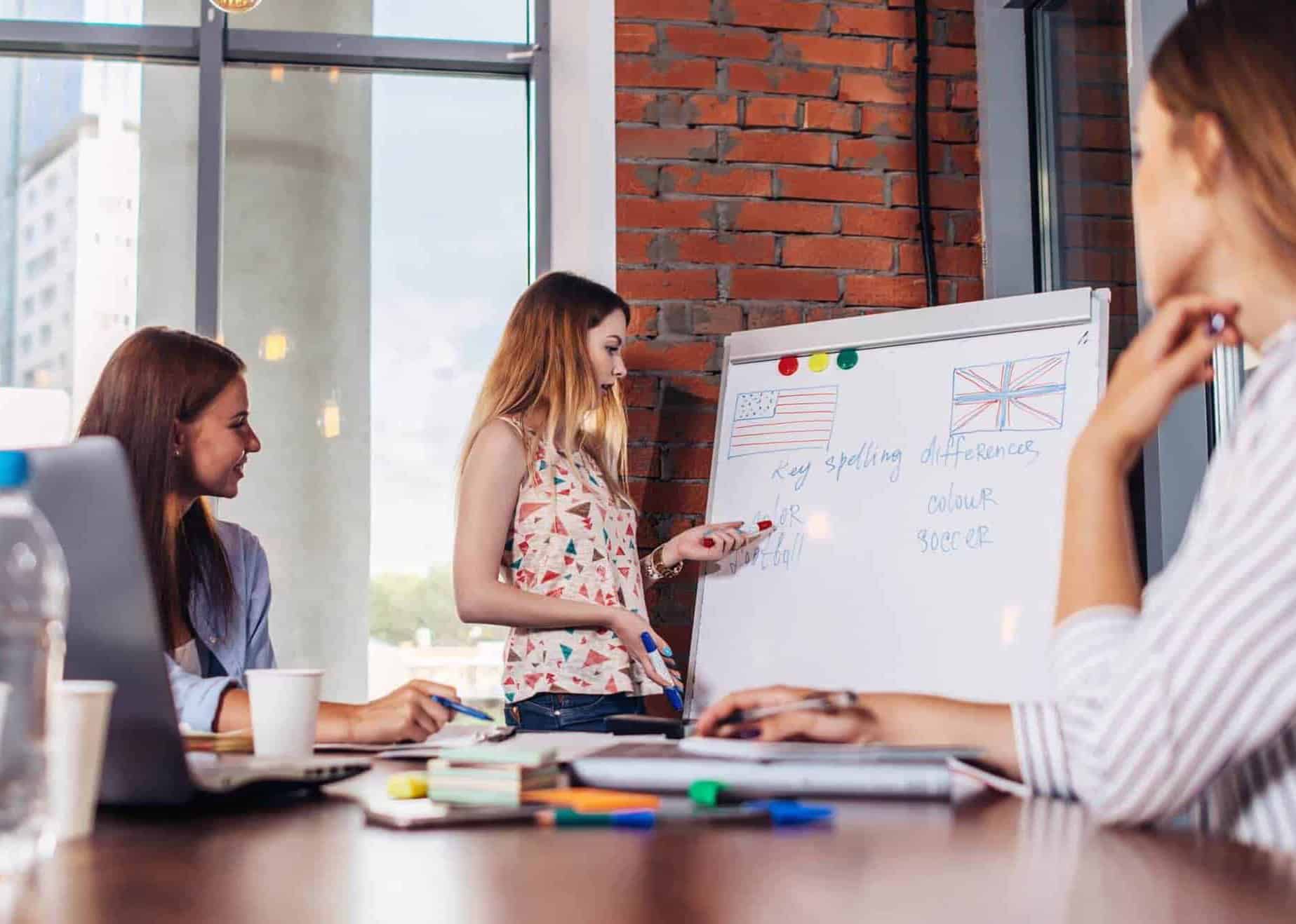 We use current examples from your everyday company life in small workshops. We also offer individual coaching and needs-based training. Learn not only the technical, English jargon but also the correct pronunciation from a native speaker! We develop customized programs that are tailored to the requirements of your industry, be it finance, marketing or technology. Our flexible training times make it possible to integrate learning seamlessly into your working day. Put your trust in our expertise and boost your team’s language skills in the long term!