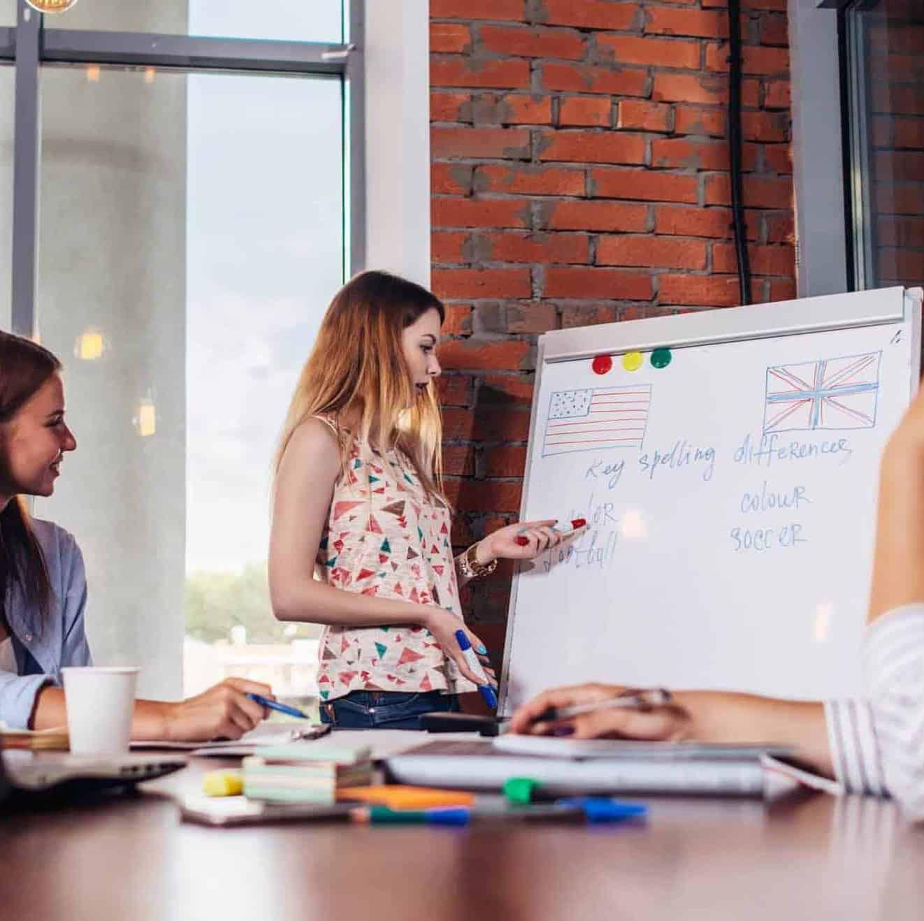 Our trainers come to your premises and work with individuals or small groups directly with your documents, e-mails, presentations, etc. specialist vocabulary vocabulary is researched in advance and included by the trainer.